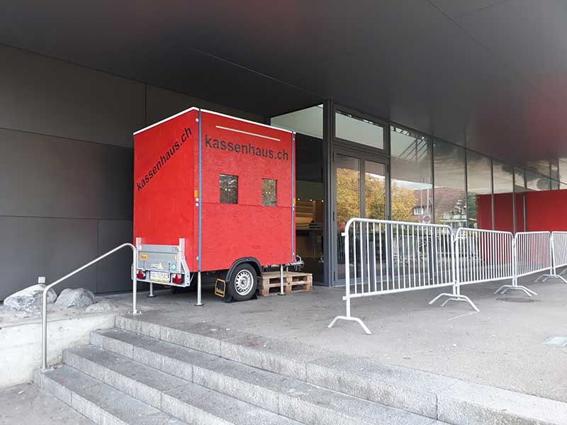Eine Auswahl an Bildern von unserem Kassenhaus – mit einem Klick werden diese in einer vergrösserten Version dargestellt. Weitere Bilder folgen nach und nach. Bitte beachtet, dass die Einsatz-Fotos teilweise in der Zeit aufgenommen wurden, in der das Kassenhaus noch nicht fix auf dem Anhänger aufgebaut war.